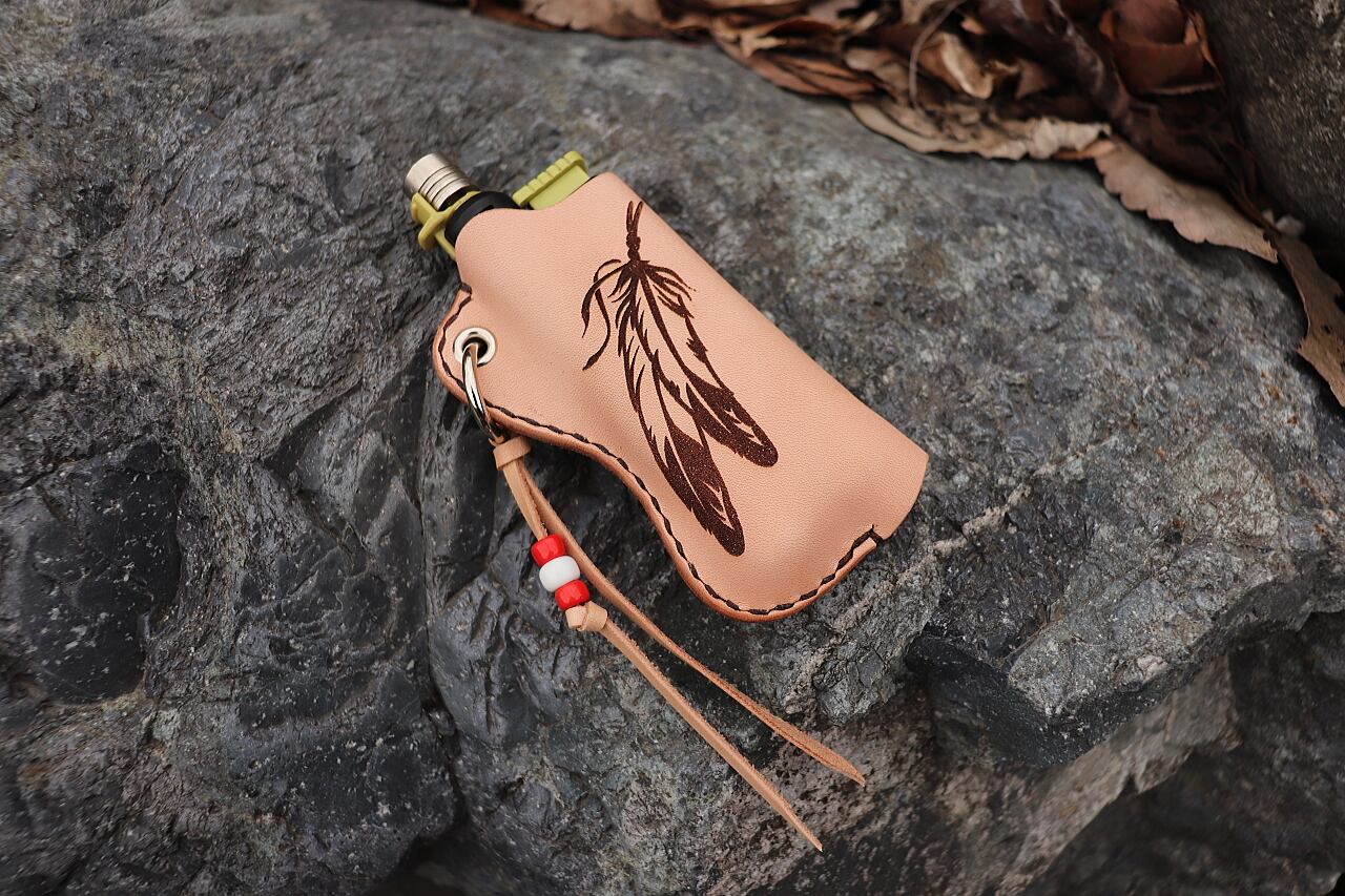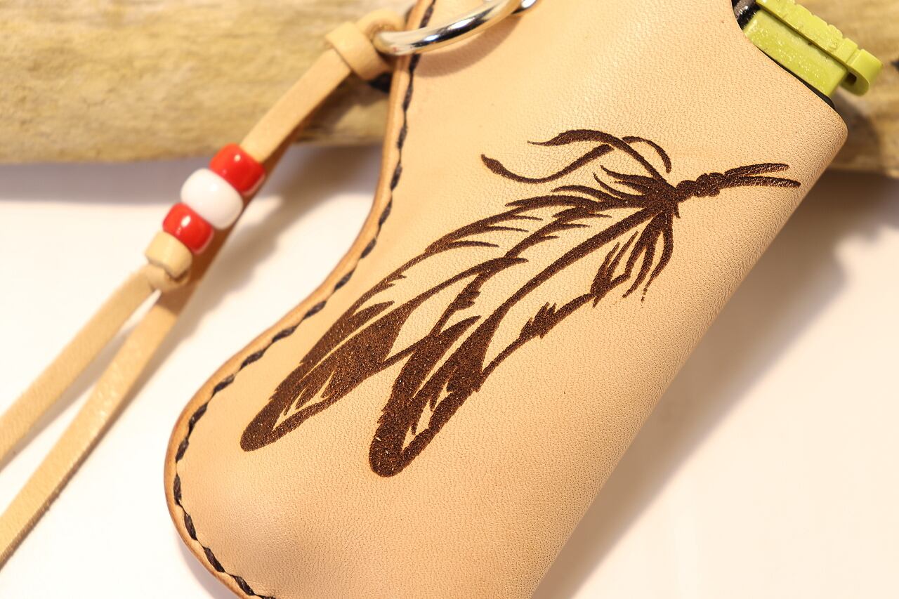 SOTOガストーチレザーカバーです。フェザー柄になります。ガストーチはつきません。革色、糸色をお選びいただけます。フリンジ部分はカラビナに変更可能です。ご購入後、お問い合わせよりご指定ください。文字入れ無料です。ご希望の方はご連絡ください。