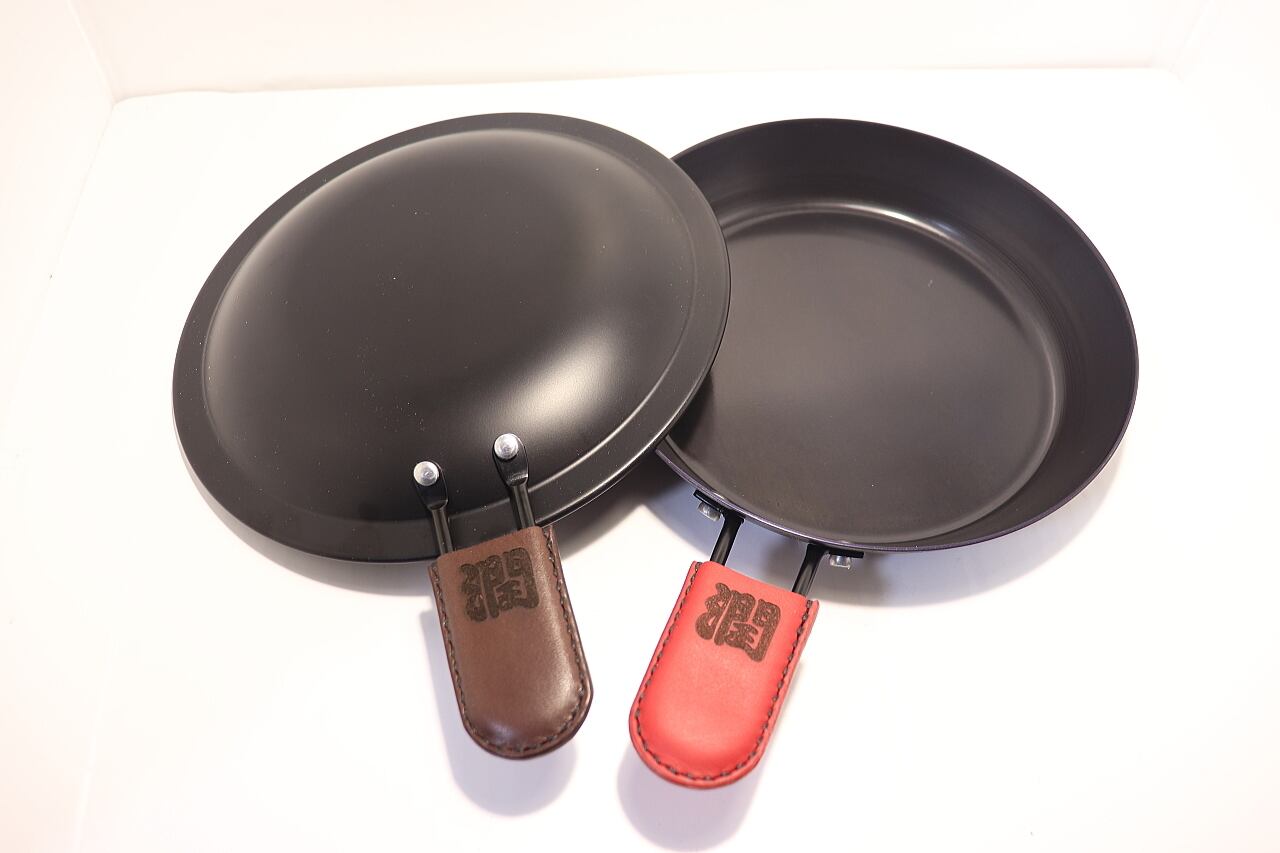 ニトリのチビパンのレザーハンドルカバーです。フライパン、蓋はつきません。蓋用、フライパン用の2個セットになります。別々の革色での制作も可能です。また、サイズ変更も可能ですので、お問い合わせください。